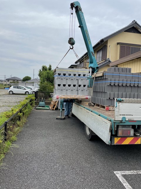 つくばみらい市O様邸の外構ブロックを納品に来たと。