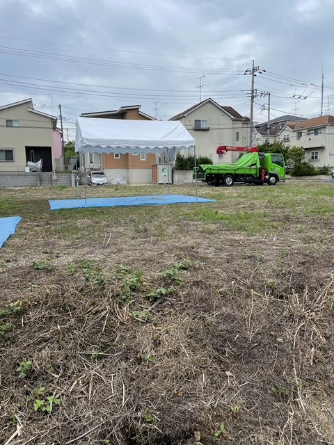本日地盤調査D様邸、D様立ち合いで奥様ご出産が控えてるという事もありテントを用意させましたわ🤭