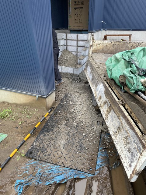 雨だからちょうど良かったね!他の外構現場手を付けれないからー。