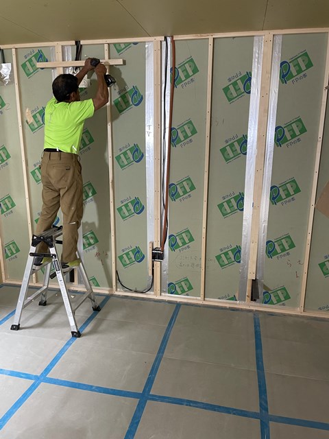 こちらは店舗の方の造作壁を作って通路がいくつあるかを最終確認👀