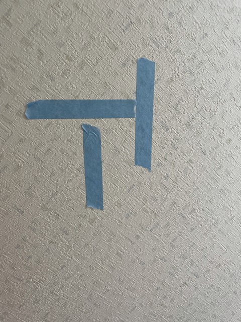 マスキングテープの縦ラインは下地の幅で横ラインは手摺の上端。
