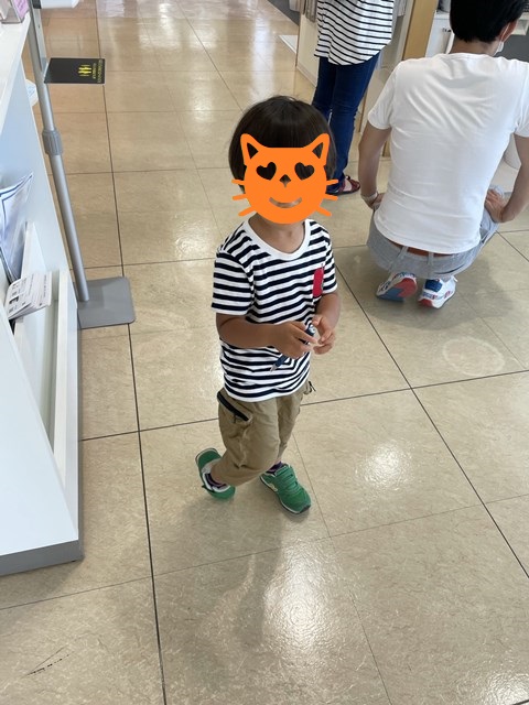 パパ・ママがトイレの説明聞いてる時に、メッチャ可愛い顔でカメラ目線サービスくれました✨