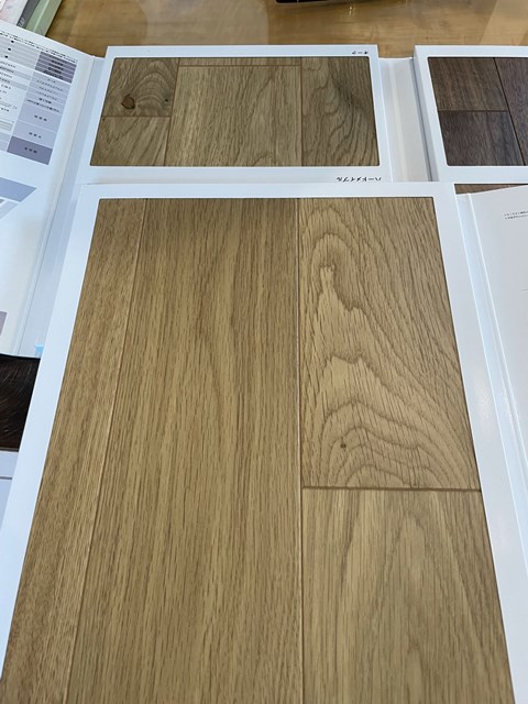 手前の見本帳と奥の見本帳、同じオーク材なのですが