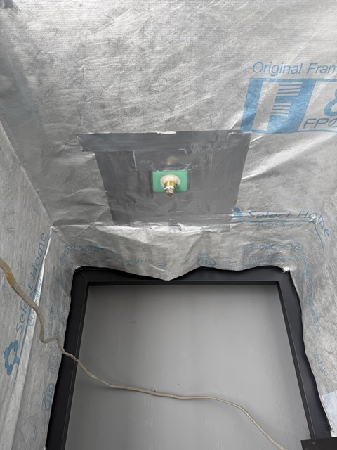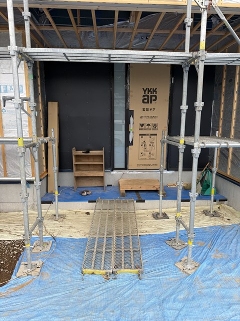 玄関ドアのところはアクセントでピーーーを貼るので、防火下地してますぅ⤴